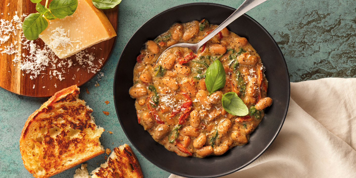 Inspirée des saveurs méditerranéennes, cette poêlée marie simplicité et gourmandise. Les haricots cannellini Clark, enrobés d’une vinaigrette citronnée, sont prêts à servir et sans rinçage. Ils se transforment en un plat complet lorsqu’ils sont mijotés avec crème, tomates séchées, bébés épinards et basilic frais.